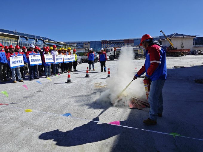 消防演练进现场 筑牢安全防护墙