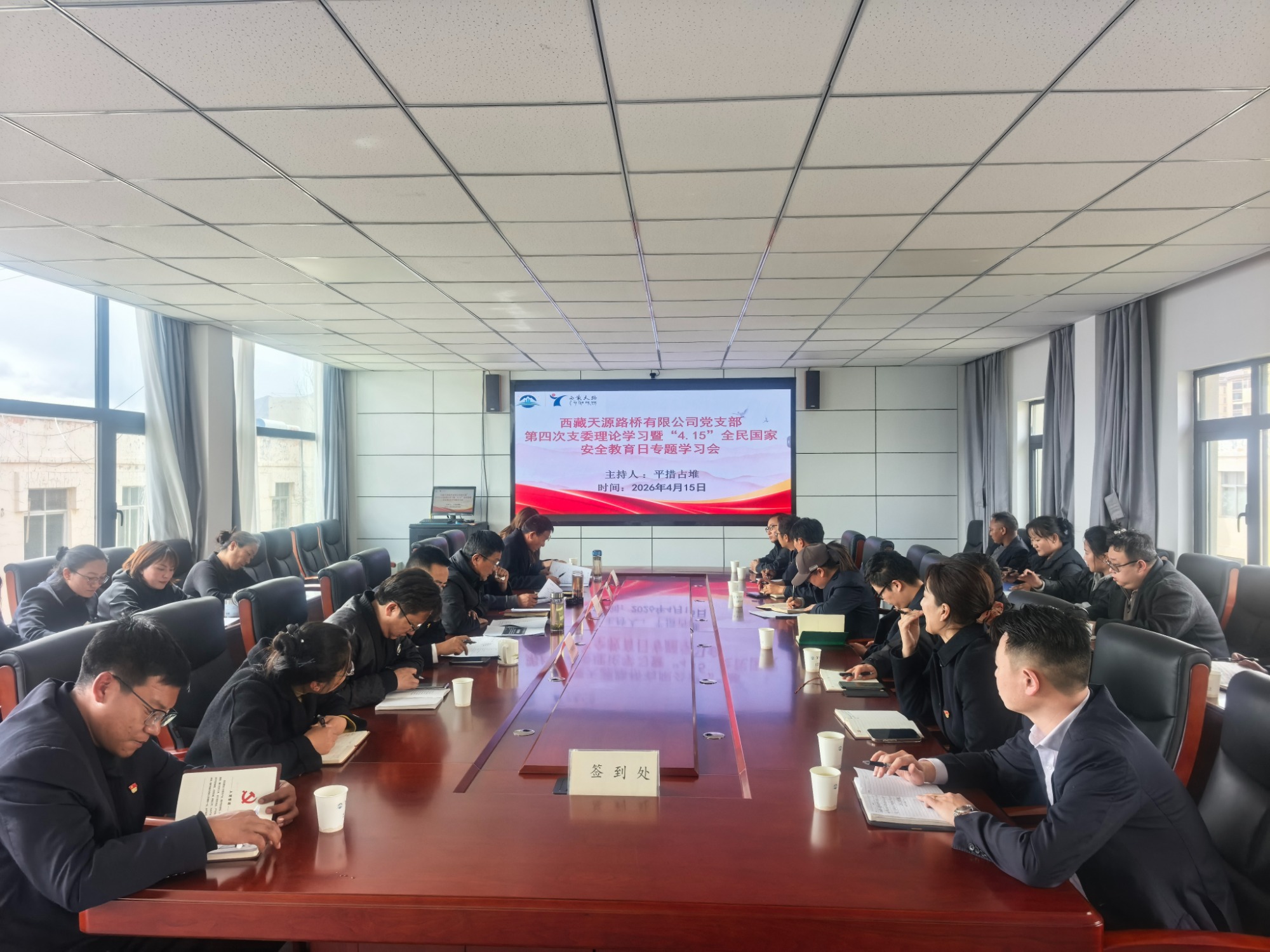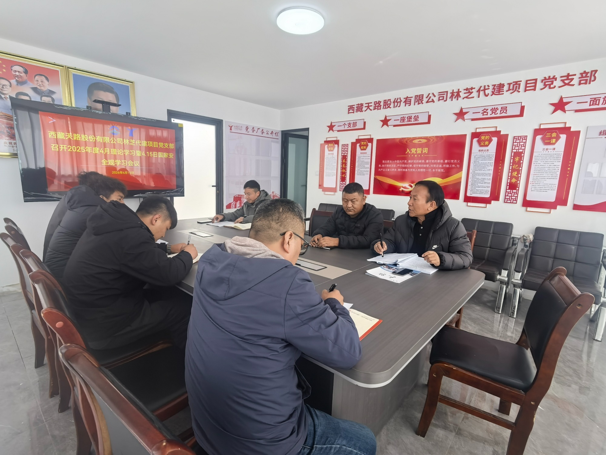 西藏天源路桥有限公司党支部召开专题学习会,集中研学国家安全相关法律法规,观看保密教育纪录片,围绕“践行安全绿色发展理念,筑牢安全生产与生态文明屏障”开展交流研讨。