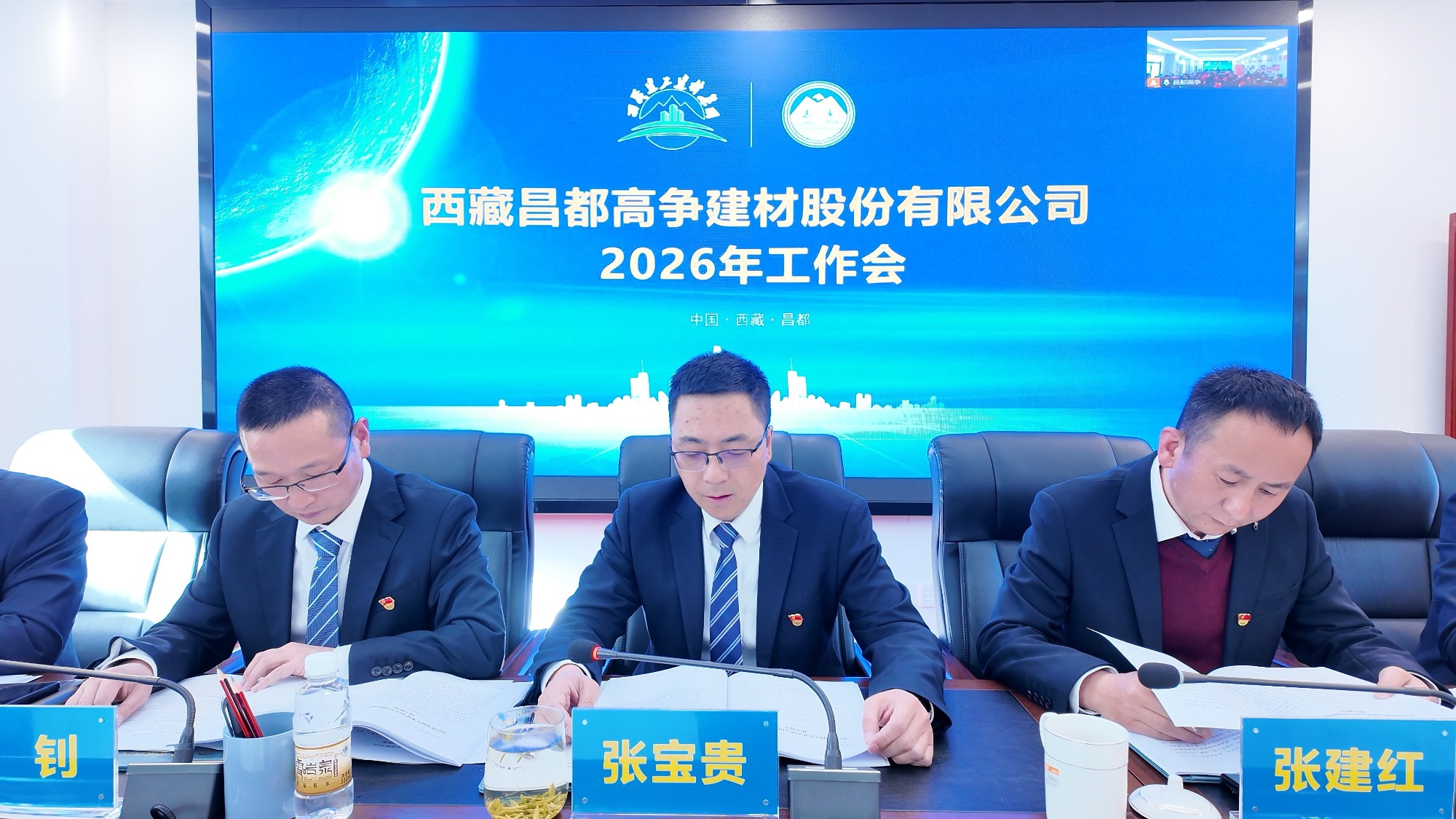 4月17日上午,西藏昌都高争建材股份有限公司以“主会场+视频分会场”形式隆重召开2026年工作会,会议以“破难题、强攻坚、促发展,奋力谱写‘十五五’高质量发展新篇章”为主题,全面总结昌都高争2025年及“十四五”时期改革发展成效,系统安排2026年及“十五五”时期关键任务,为昌都高争在新征程上实现质的有效提升和量的合理增长筑牢坚实基础。藏建集团党委委员、副总经理马斌,藏建水泥副总经理谢仁柱,昌都高争党委书记、董事长张宝贵等领导班子及各部门负责人、葛洲坝项目组代表、天津矿山代表、中铁二十三局代表、先进集体代表、先进个人代表共计63人参加会议。