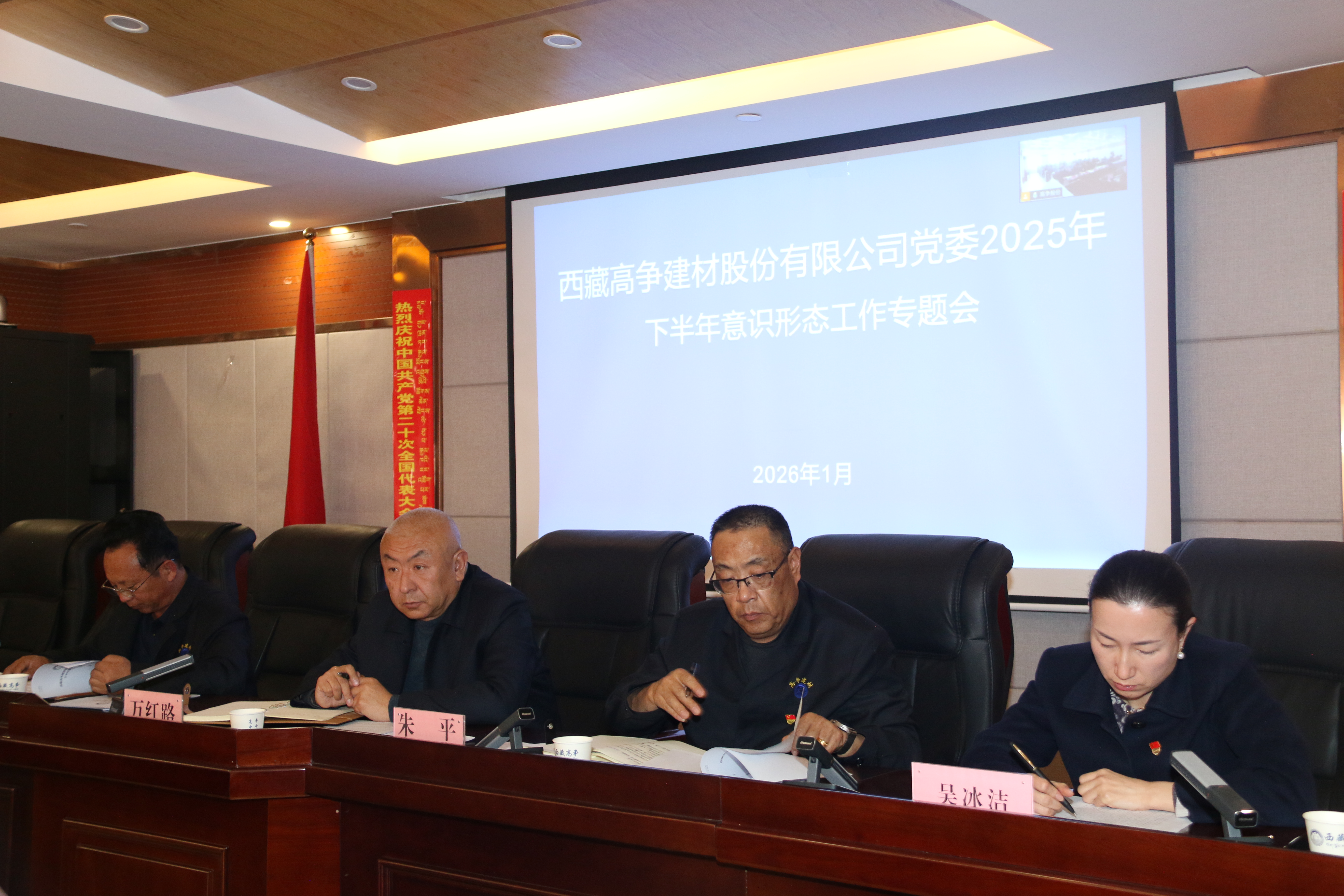 2026年1月7日,西藏高争建材股份有限公司党委召开2025年下半年意识形态工作专题会。高争股份党委书记、董事长万红路主持会议,公司在家领导、各车间、各部门、子公司负责人及机关全体党员参加会议。