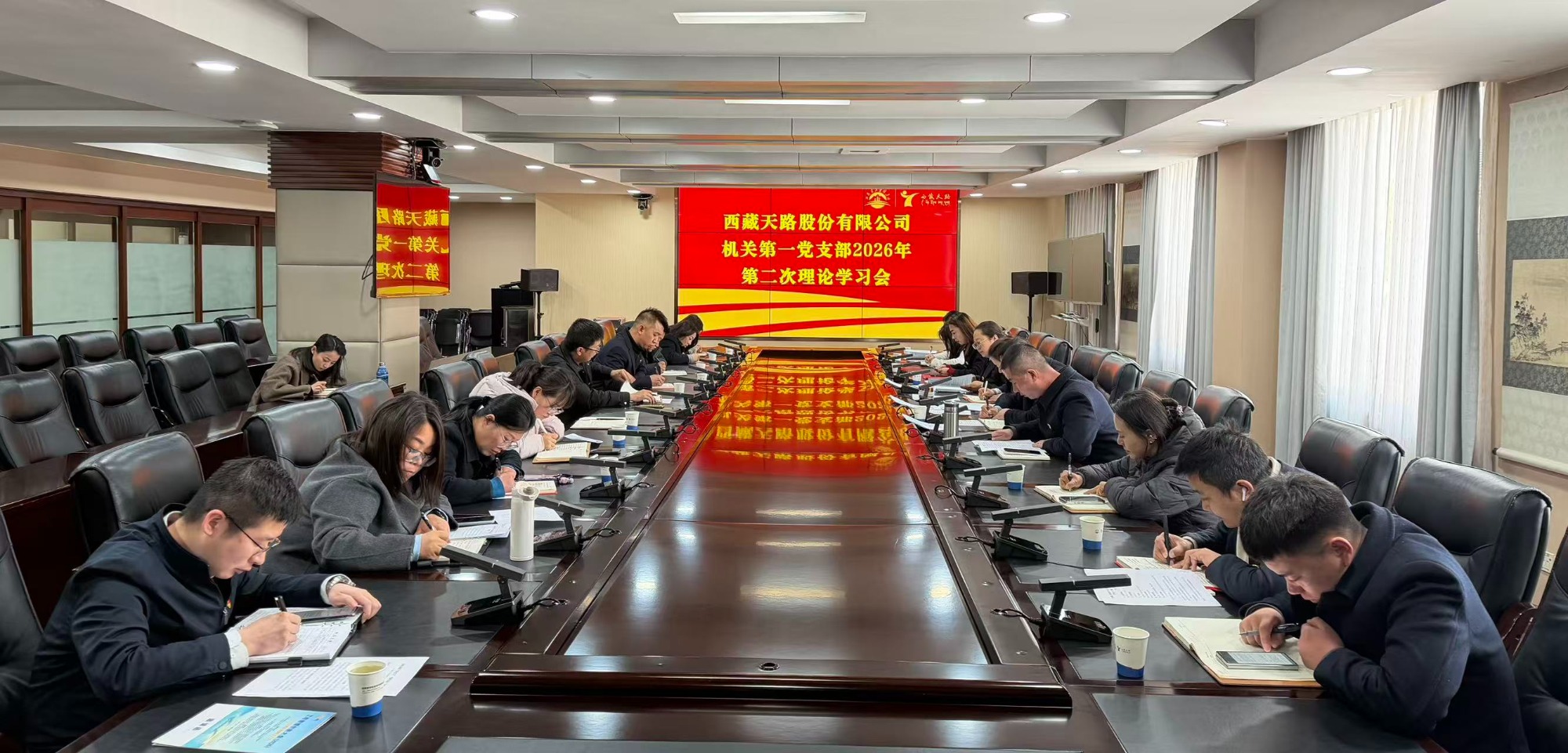 西藏天源路桥有限公司党支部召开专题学习会,集中研学国家安全相关法律法规,观看保密教育纪录片,围绕“践行安全绿色发展理念,筑牢安全生产与生态文明屏障”开展交流研讨。