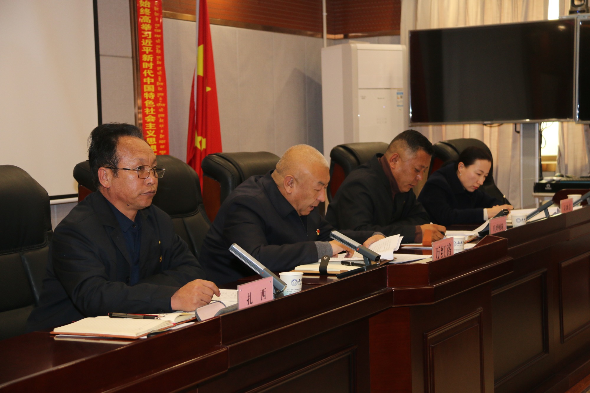 为深入学习贯彻习近平新时代中国特色社会主义思想,推动党中央重大决策部署在公司落地生根,11月19日下午,高争股份公司召开习近平总书记在西藏视察时的重要讲话精神宣讲、党的二十届四中全会精神专题辅导暨公司党委第六次理论学习中心组学习会。会议由公司党委委员、副总经理扎西主持,公司在家领导、总经理助理,各部门及各车间中层以上管理人员,在拉萨的子公司主要负责人共计30余人参加会议。