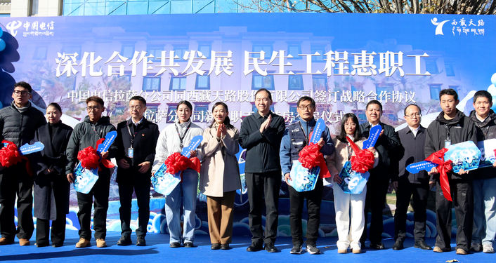 点击量:208412月1日上午,以“深化合作共发展 民生工程惠职工”为主题的战略合作签约暨中国电信拉萨分公司新建职工周转房交房仪式顺利举行。西藏建工建材集团有限公司党委书记、董事长庄存伟,中国电信西藏公司党委书记、总经理张世敏出席仪式讲话,见证战略协议签约,并为新建周转房揭牌。 西藏天路股份有限公司党委书记、董事长顿珠朗加,中国电信