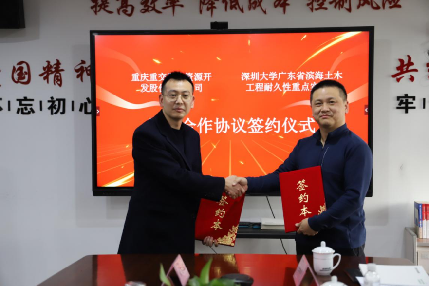 点击量:3682026年1月5日,重庆重交再生资源开发股份有限公司与深圳大学广东省滨海土木工程耐久性重点实验室在重庆重交隆重举行战略合作签约仪式。双方围绕低碳建材、固废资源化利用、智慧城市、建筑碳中和等重点领域,开展全方位、深层次的产学研合作,共同构建长期稳定的战略伙伴关系。 重庆重交董事长韩晓虎、代总经理吴鹏,深圳大学特聘教授、国家杰青、广东省滨海土木工程耐久性重点实验室副主任董必钦教授及其核心团队出席签约仪